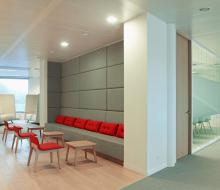 The primary function of this new flexible working environment will no longer be to support individual work, but rather to offer a multi-purpose space where employees have a multitude of options to meet, collaborate, concentrate,... As the number of workstations decreases, new workplace typologies are being integrated, such as phone booths, cockpits, quiet zones, co-creation rooms, etc., all of which are available to employees, to be chosen according to the task to be performed or their personal preferences.