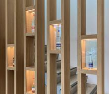 In het houten raster kunnen de verschillende producten in hun natuurlijke vorm in de kijker gezet worden. Het gedicht, geschilderd op de muur is een knipoog naar de geschiedenis van het familiebedrijf. Het is nl een remake van het originele gedicht dat de Ordal flessen van weleer sierde, geschreven door een oud-nonkel.